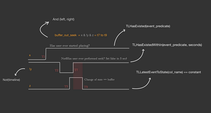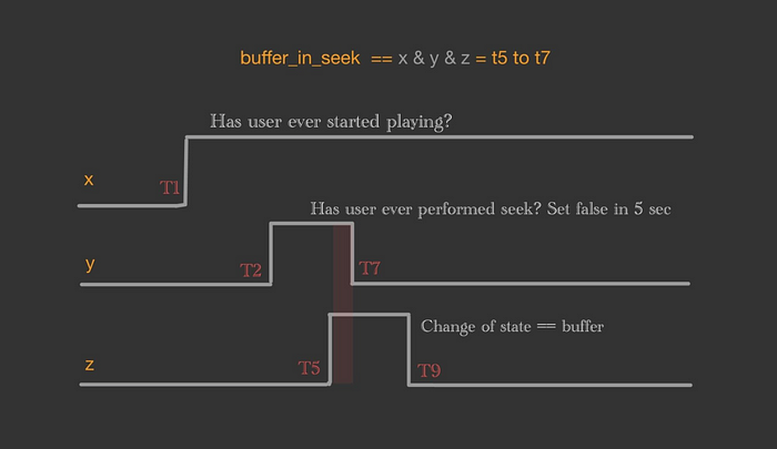 - “Has the user ever performed a seek”: We observe this at T2. Similarly, it’s a boolean plot that turns true after T2.