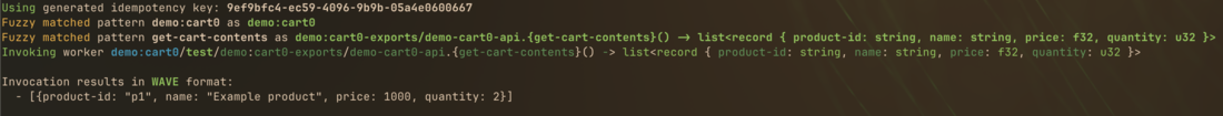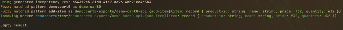 golem worker invoke demo:cart0/test add-item '{ product-id: "p1", name: "Example product", price: 1000.0, quantity: 2 }'