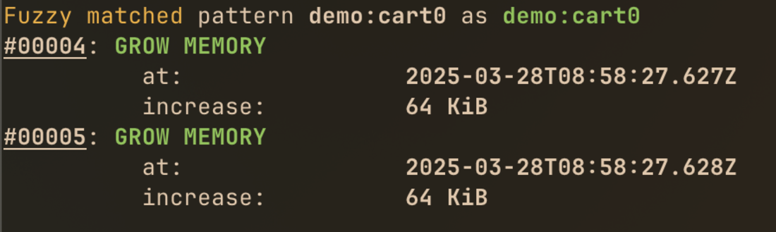 And we can query the test worker's oplog to get an idea of how much additional memory it allocated dynamically runtime: