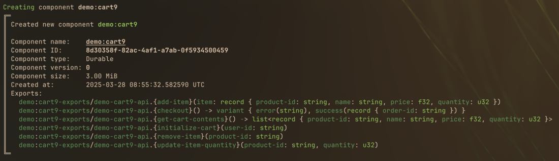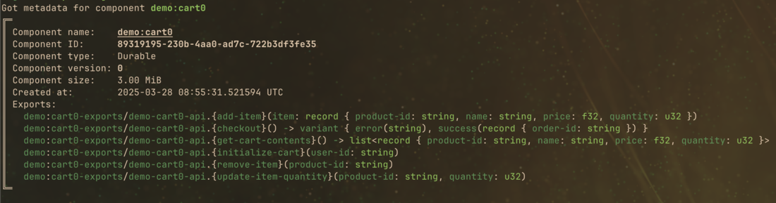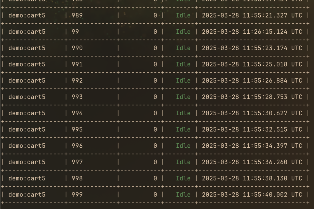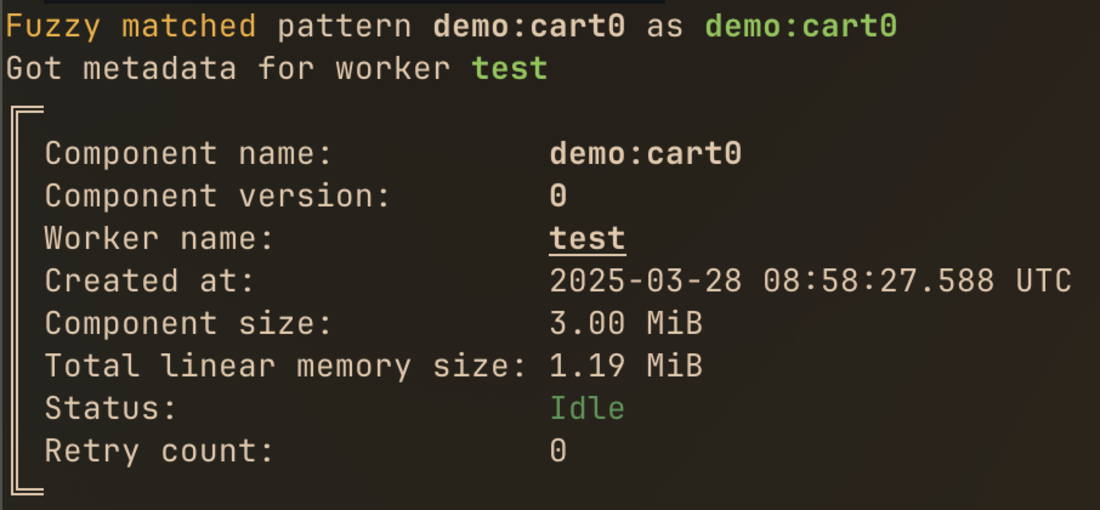Before spawning our thousands of workers, we try out this exported interface by creating a single worker of demo:cart0