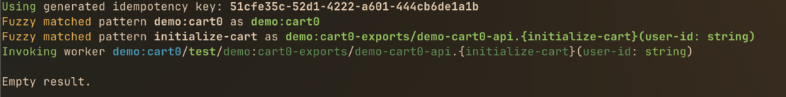 golem worker invoke demo:cart0/test initialize-cart '"user1"'